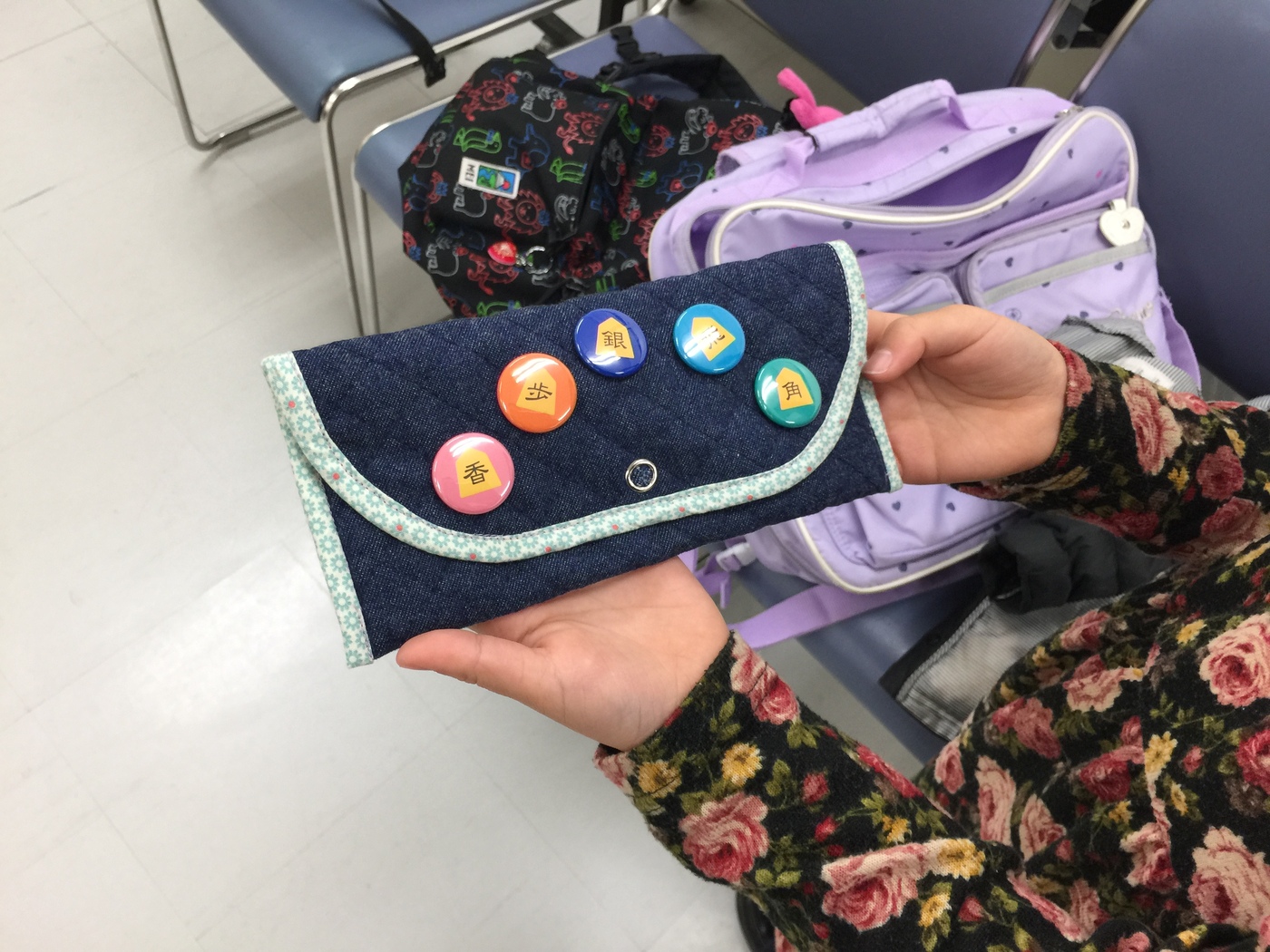 将棋を始めたお子さんが、初めて大会に参加して「楽しかった!」と思える大会にしたいなと思い、勝ち星に関係なく、対局数に応じて缶バッジをもらえる自由対局コーナーを作りました。(写真:先日子ども教室の生徒がみせてくれました。「一回しか勝てなかったけど」と言ってましたが、充実したようなニコニコ顔をみせてくれて嬉しかったです。)