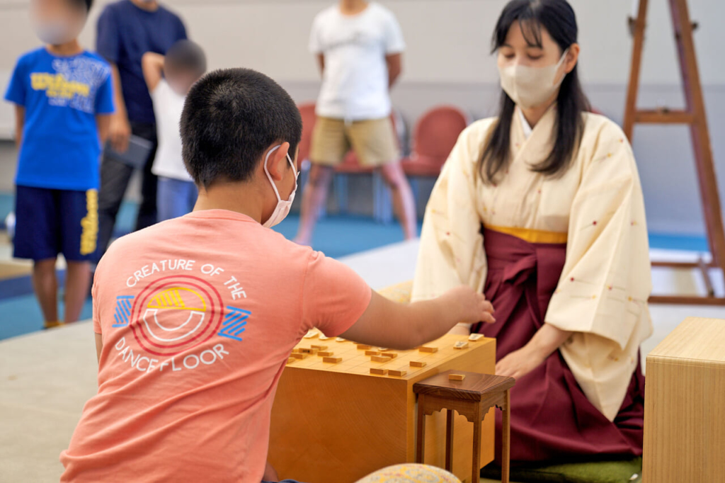 将棋がはじめての方対象で、将棋の指し方が学べるだけではなく、クイズ等を交えて楽しく将棋の歴史や文化的側面を学ぶ時間や、第74期将棋名人戦第三局で実際に使用された将棋盤駒を使用した対局体験など、盛りだくさんな内容となっています。