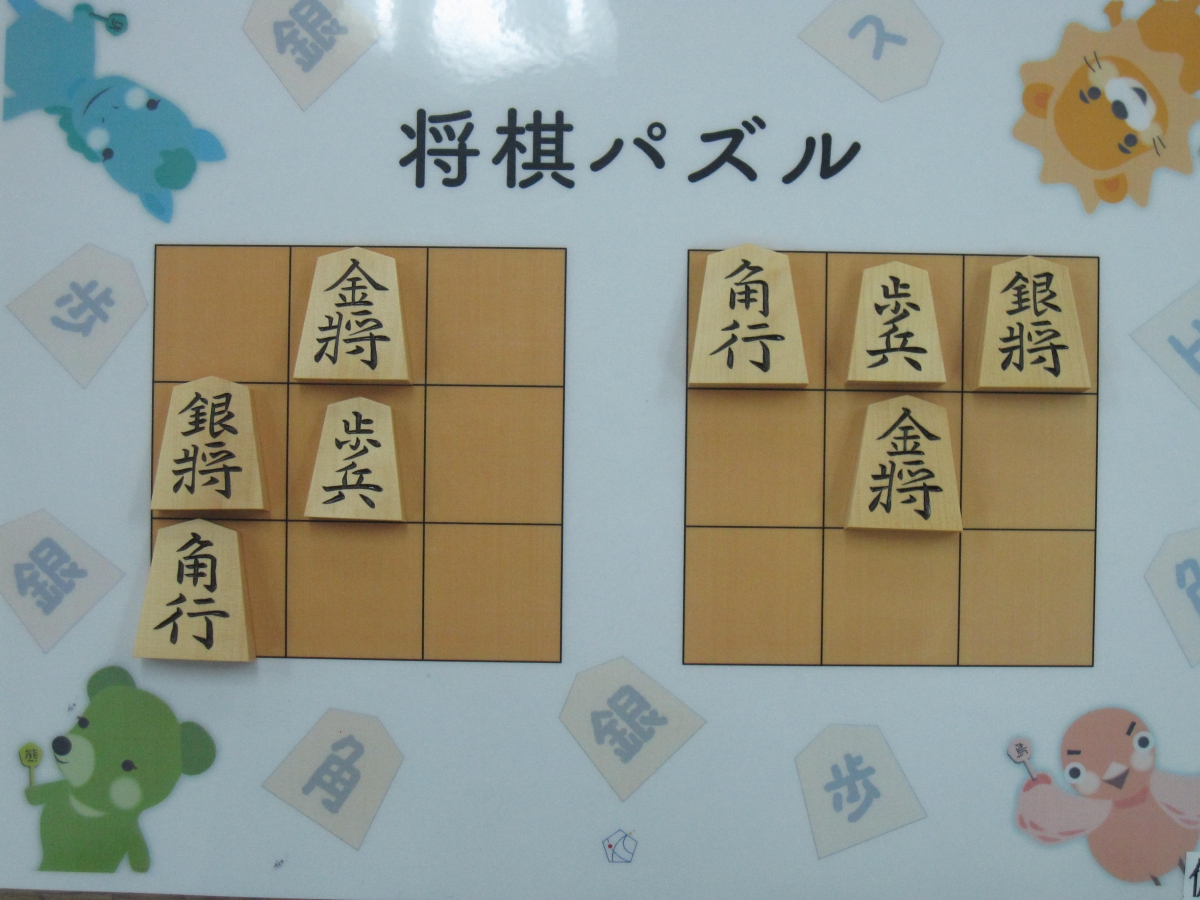 将棋パズルは、将棋の駒と盤(3×3)を使った簡単なゲームです。