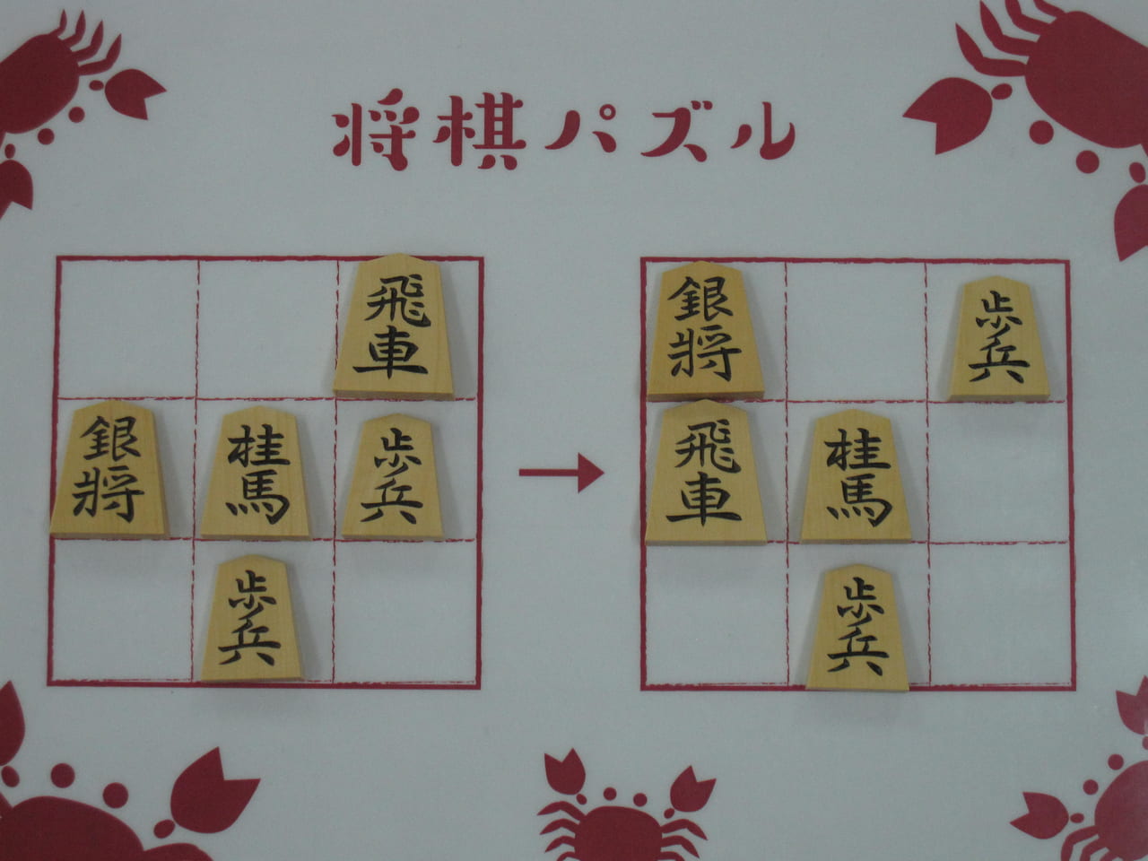 将棋パズルは、将棋の駒と盤(3×3)を使った簡単なゲームです。