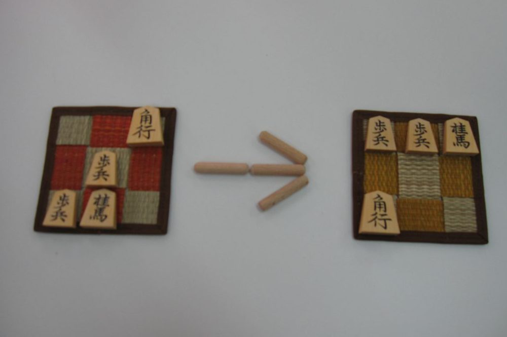 駒の動き方に従って駒を動かしながら、左の図を右の図と同じようにしてください。