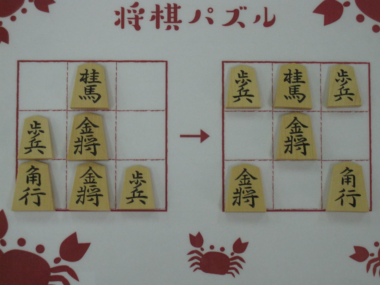 将棋パズルは、将棋の駒と盤(3×3)を使った簡単なゲームです。
