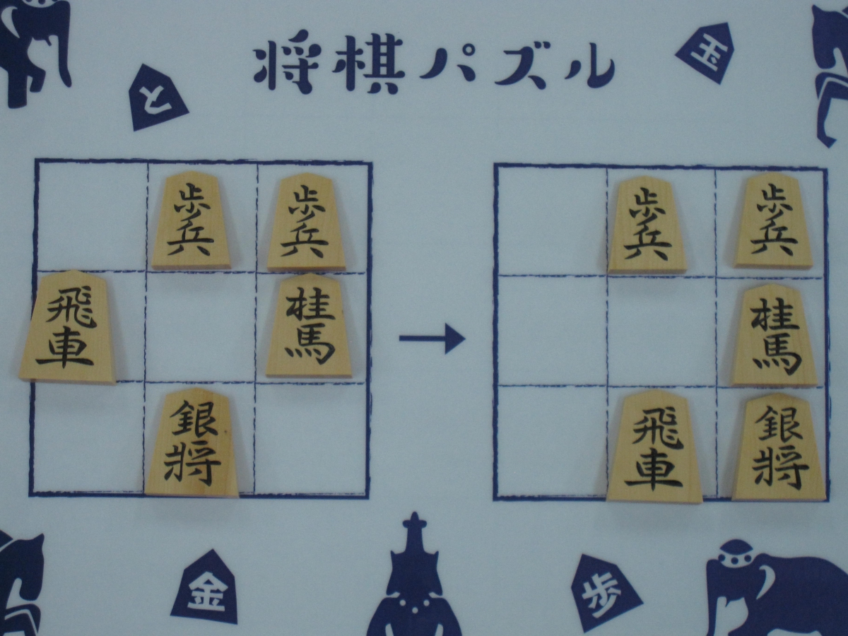 将棋パズルは、将棋の駒と盤(3×3)を使った簡単なゲームです。